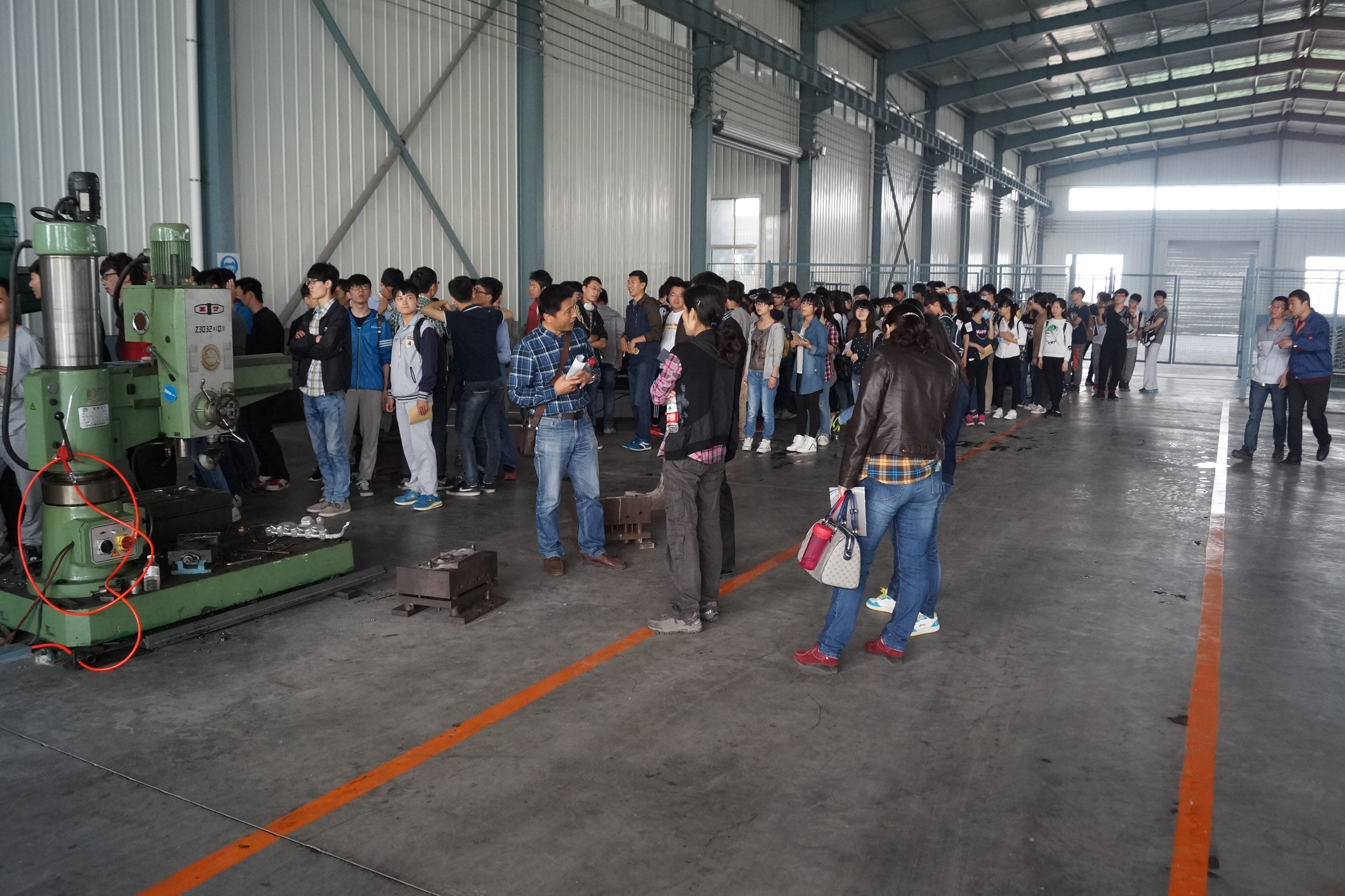 2015年4月24日,濟南大學(xué)材料學(xué)院160多名大二學(xué)生在6名老師的帶領(lǐng)下來(lái)我公司參觀(guān)、見(jiàn)習,從鑄造車(chē)間開(kāi)始,公司技術(shù)人員對學(xué)生講解了關(guān)于產(chǎn)品的生產(chǎn)流程、工藝標準,澆鑄機、壓鑄機的操作要求,介紹了工裝模具制修室的機床,機加工車(chē)間的數控車(chē)、加工中心的使用要求等 ,并且學(xué)生們對現場(chǎng)參觀(guān)提出了自己的問(wèn)題。